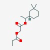 | | acetic acid (1-oxopropoxy)-, 1-(3,3- dimethyl cyclohexyl)ethyl ester | | | acetic acid (1-oxopropoxy)-, 1-(3,3- dimethylcyclohexyl)ethyl ester | | | acetic acid 2-(1-oxopropoxy)-, 1-(3,3-dimethyl cyclohexyl)ethyl ester | | | acetic acid 2-(1-oxopropoxy)-, 1-(3,3-dimethylcyclohexyl)ethyl ester | | 1-3,3- | dimethyl cyclohexyl)ethoxy)carbonyl)methyl propionate | | 1-3',3'- | dimethyl-1'-cyclohexyl ethoxycarbonyl methyl propanoate | | (1S,rR)-[1-(3',3'- | dimethyl-1'-cyclohexyl)ethoxycarbonyl]methyl propanoate | | 1-3',3'- | dimethyl-1'-cyclohexylethoxycarbonylmethyl propanoate | | 1-3,3- | dimethylcyclohexyl)ethoxy)carbonyl)methyl propionate | | [2-[1-(3,3- | dimethylcyclohexyl)ethoxy]-2-oxoethyl] propanoate | | | romandolide (Firmenich) |