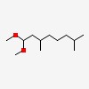 | | dihydro citronellal dimethyl acetal | | 1,1- | dimethoxy-3,7-dimethyl octane | | 1,1- | dimethoxy-3,7-dimethyloctane | | 3,7- | dimethyl octanal dimethyl acetal | | 3,7- | dimethyloctanal, dimethyl acetal | | | octane, 1,1-dimethoxy-3,7-dimethyl- |